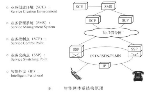為滿足用戶對新業(yè)務(wù)的需求,20世紀80年代中期。電信網(wǎng)中出現(xiàn)了公共的業(yè)務(wù)平臺,隨后進一步發(fā)展成為智能網(wǎng)技術(shù)。智能網(wǎng)的基本思想是將業(yè)務(wù)提供功能從電路交換機中剝離出來,實現(xiàn)呼叫控制和業(yè)務(wù)控制的分離。這樣,交換機僅需要完成基本的接續(xù)功能,而通過附加的智能網(wǎng)業(yè)務(wù)控制點完成對業(yè)務(wù)的集中控制。智能網(wǎng)的基本結(jié)構(gòu)如下圖所示。