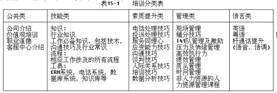 按內容,培訓可分為如下幾類,如表15-1所示。