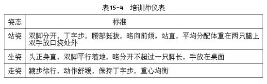 培訓師在培訓時需注意儀表,具體要求如表15-4所示。